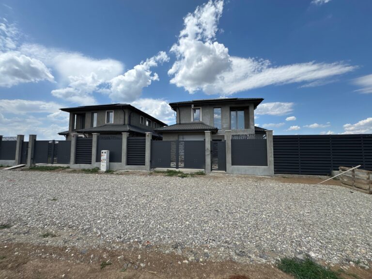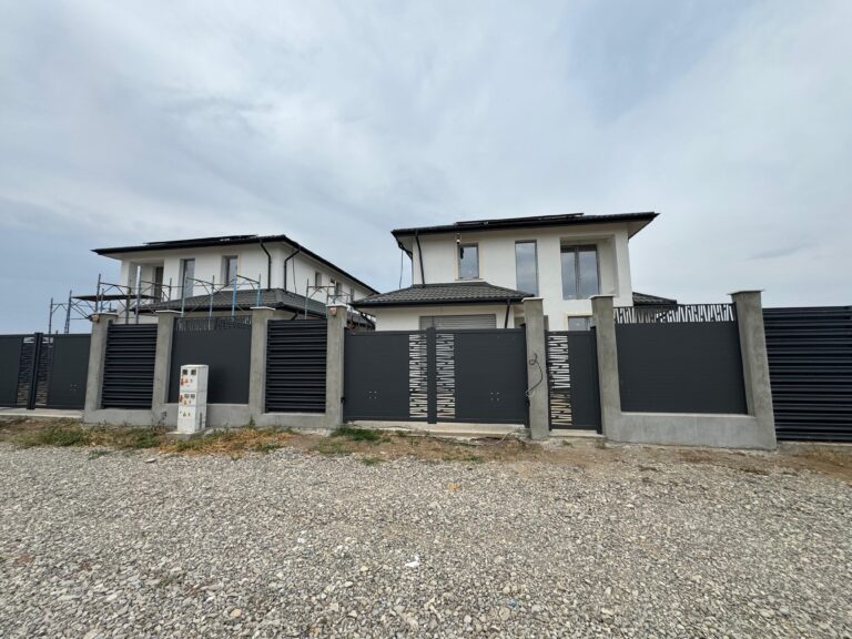 Dotări și beneficii incluse Pentru un plus de siguranță și confort, fiecare locuință este dotată cu un video interfon pentru controlul accesului la poarta pietonală și porțile auto, un sistem de supraveghere video cu înregistrare DVR și acces de la distanță prin telefon. De asemenea, beneficiati de uși de garaj și porți auto acționate prin telecomandă, asigurând astfel un acces facil și securizat. Plus fose ecologice de 3.000 litri.